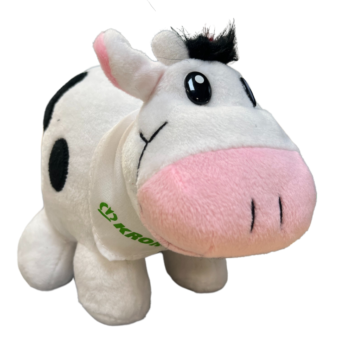 Our soft and fluffy KRONE cow with its own neckerchief featuring the KRONE logo.